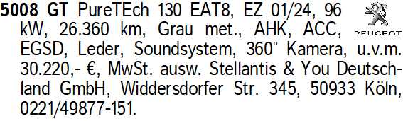 Erscheinungsdatum: Anzeige vom 28.3.2026 in der Rubrik "Peugeot"