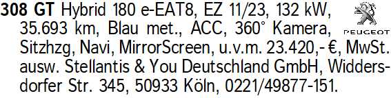 Anzeige vom 28.3.2026 in der Rubrik "Peugeot"