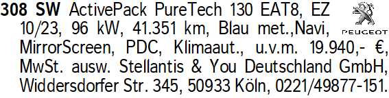 Anzeige vom 28.3.2026 in der Rubrik "Peugeot"