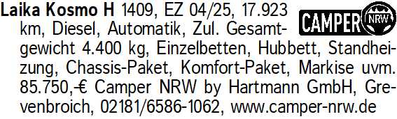 Erscheinungsdatum: Anzeige vom 28.3.2026 in der Rubrik "Wohnwagen/Wohnmobile"