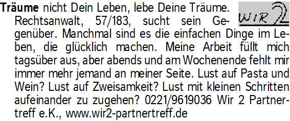 Anzeige vom 28.3.2026 in der Rubrik "Er sucht Sie"