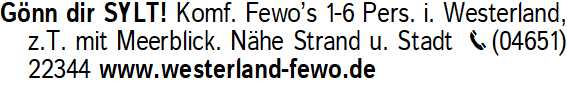 Anzeigentitel: Gönn dir SYLT! Komf. Fewo s 1-
