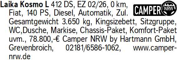 Erscheinungsdatum: Anzeige vom 4.4.2026 in der Rubrik "Wohnwagen/Wohnmobile"