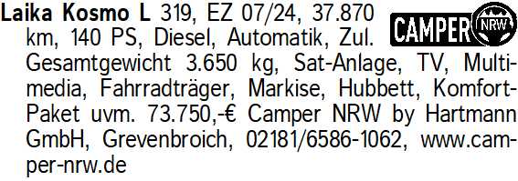 Anzeige vom 18.4.2026 in der Rubrik "Wohnwagen/Wohnmobile"