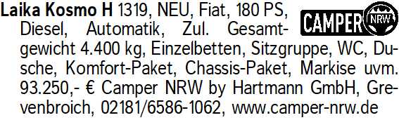 Anzeigentitel: Laika Kosmo H 1319, NEU, Fiat,